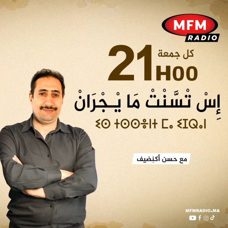 برنامج إذاعي بالأمازيغية ينقل شكايات ومشاكل المواطنين من مدنهم وقراهم، ويمنحهم فرصة إيصال صوتهم للمسؤولين مباشرة. إذا كانت لديك مشكلة أو طلب لم تجد له جوابًا، إم إف إم تفتح لك الباب لتبلغ شكواك وتسمع الرد من الجهة المعنية. رفقة حسن أكنيضيف